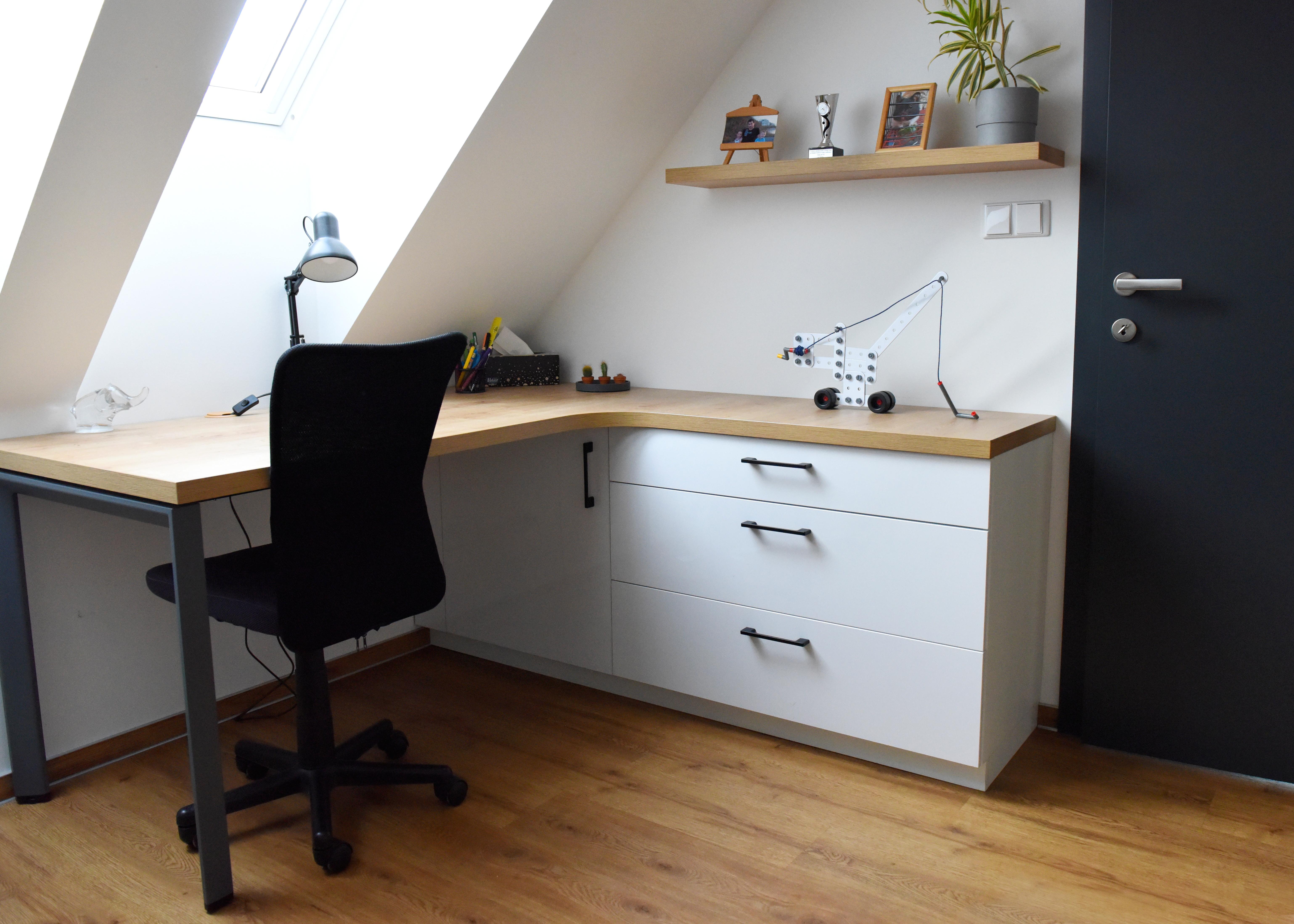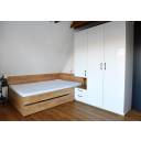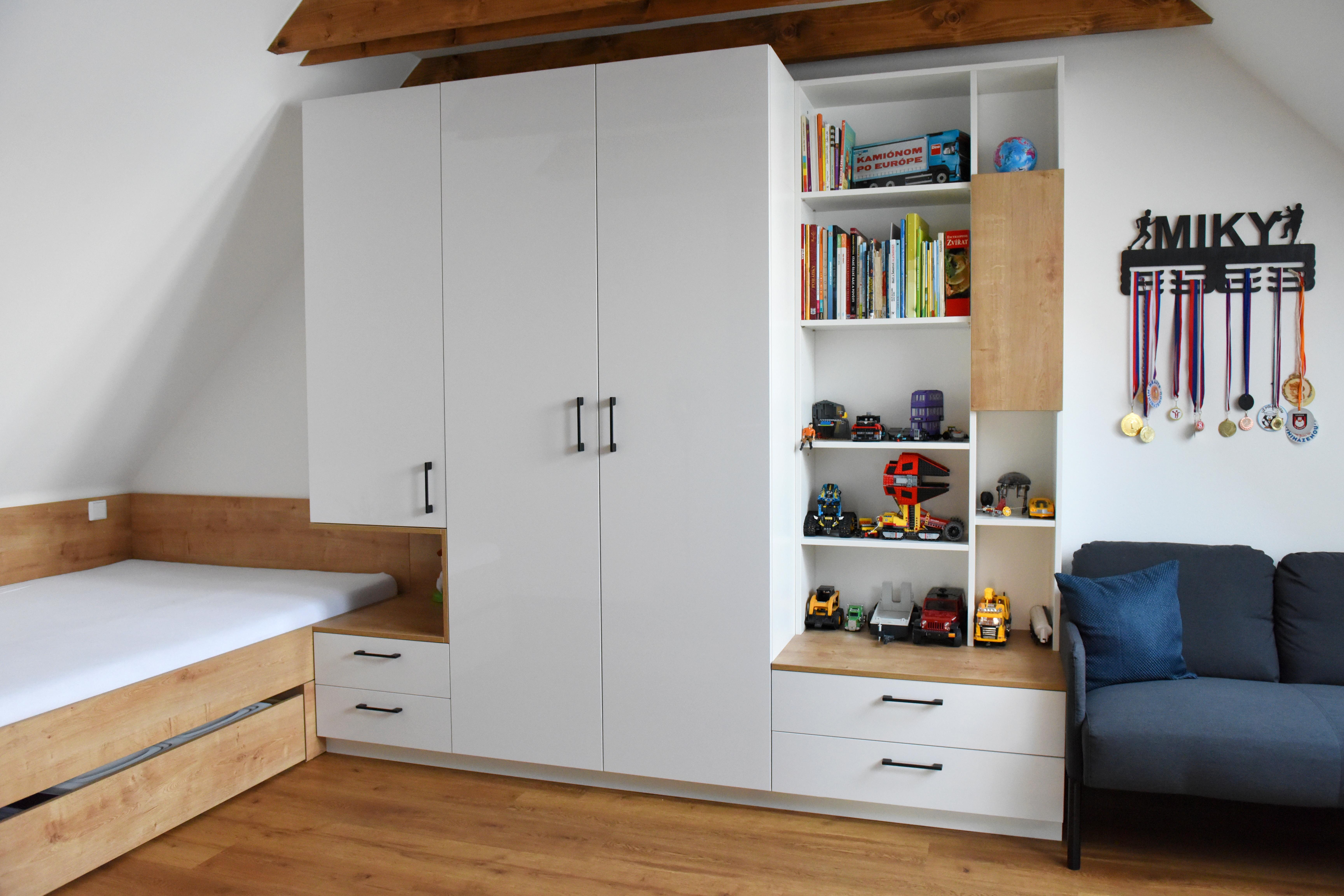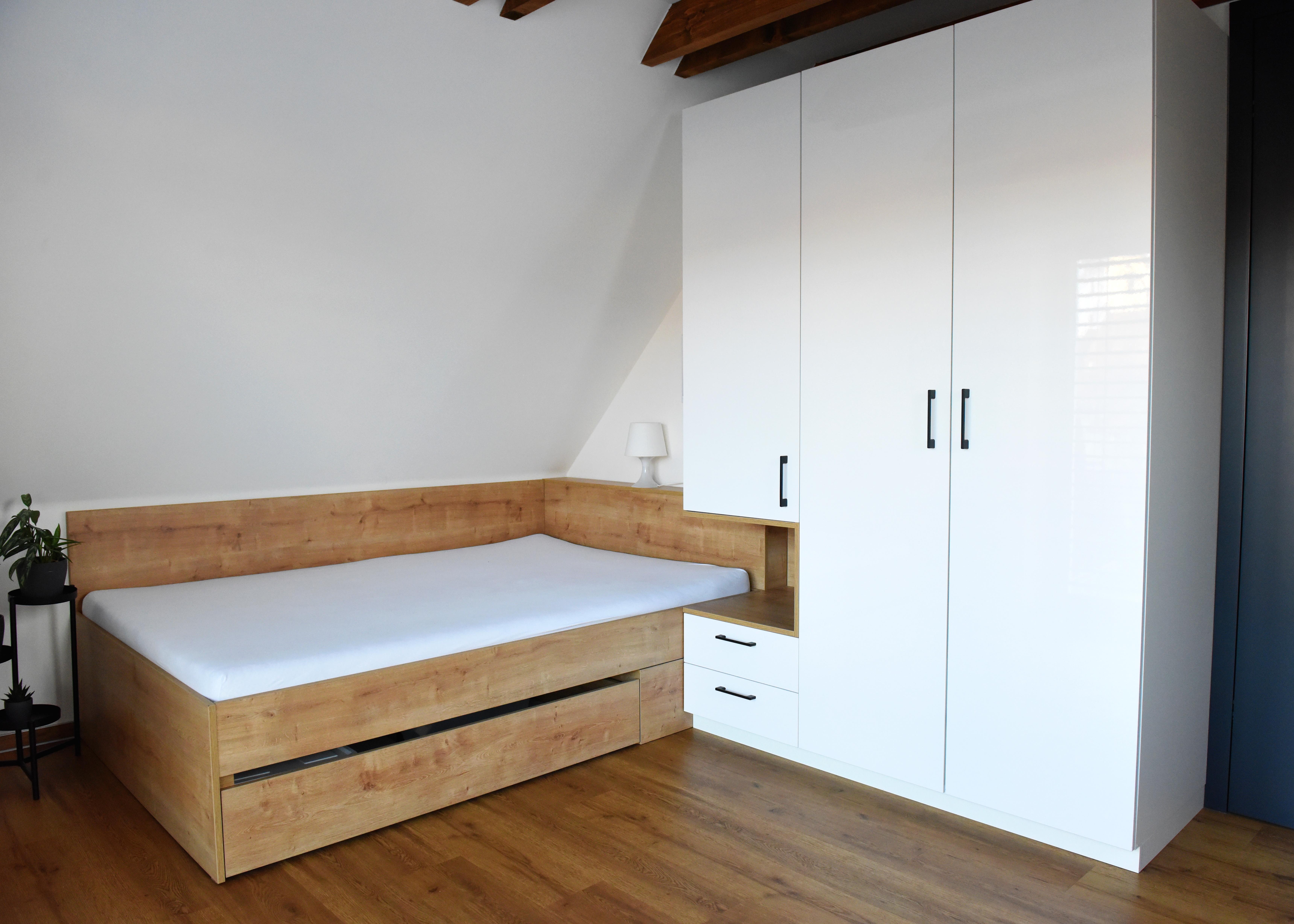 Umíme vyrobit nábytek i do prostoru s omezenou velikostí například vyvýšenou postelí s hracím koutkem pod ní nebo poschoďovými postelemi.